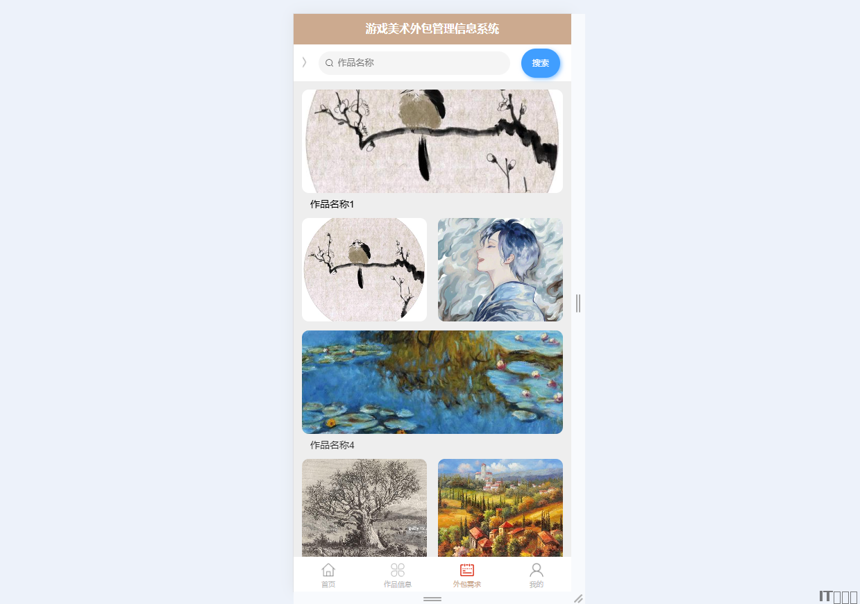 《游戏美术外包管理信息系统》是一款针对游戏美术外包行业设计的全流程数字化管理解决方案。系统通过整合移动端与管理端,构建了连接美术创作者、外包企业与项目管理的三方协作平台,实现了从需求发布到作品交付的全过程在线化管理。