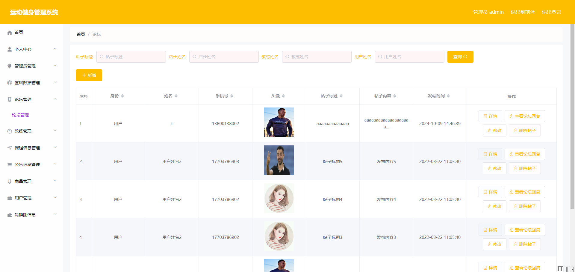 多角色管理:用户、教练、管理员账户统一管理